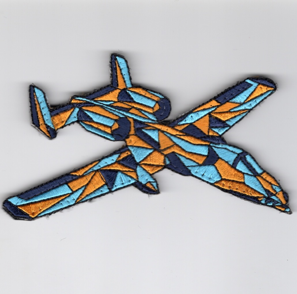 (Another AV8RSTUFF “fun” Creation): This is the *geometric-designed* A-10 WARTHOG that has these colors: Orange/Light Blue and does come with velcro attached….Why? Just for the hell of it!!!