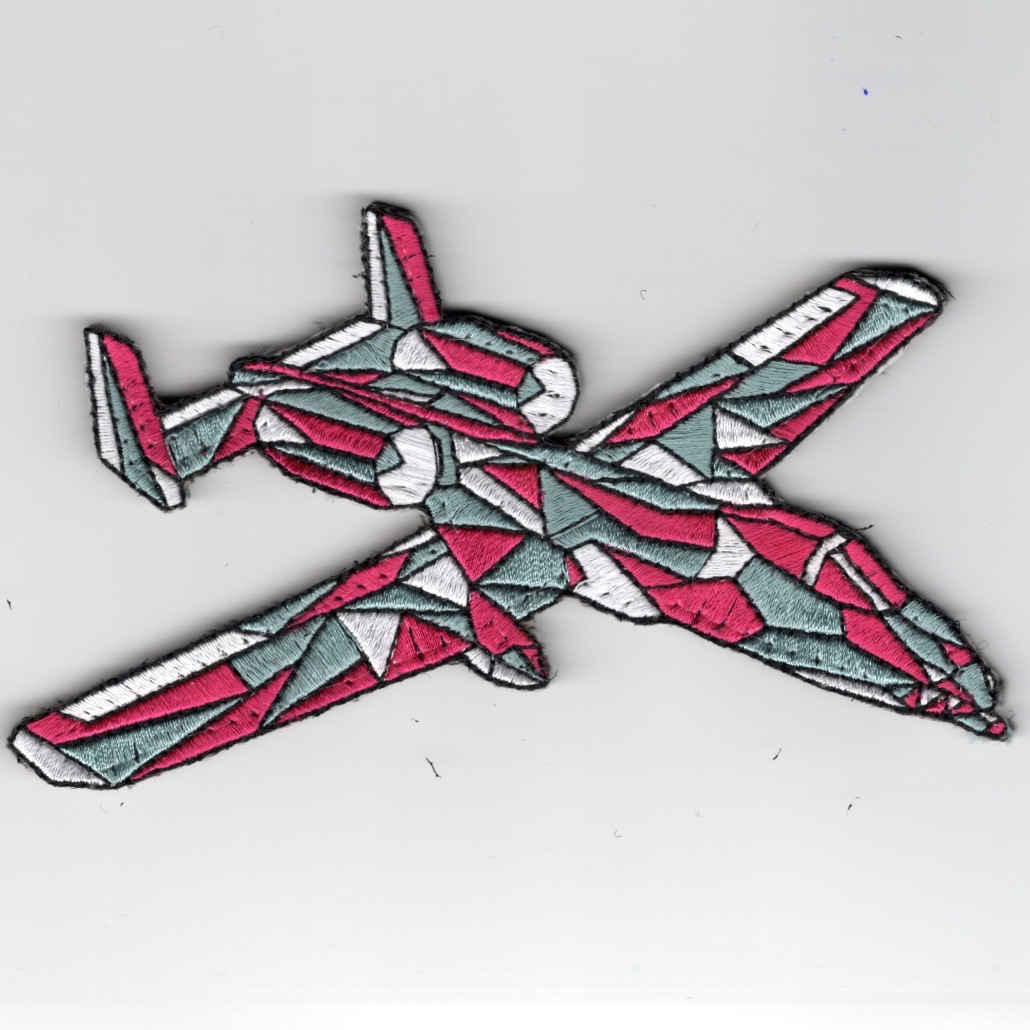 (Another AV8RSTUFF “fun” Creation): This is the *geometric-designed* A-10 WARTHOG that has these colors: Pink/White/Gray and does come with velcro attached….Why? Just for the hell of it!!!
