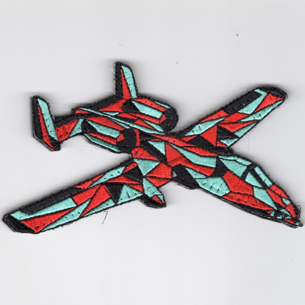 (Another AV8RSTUFF “fun” Creation): This is the *geometric-designed* A-10 WARTHOG that has these colors: Dark Red/Light Blue-Green and does come with velcro attached….Why? Just for the hell of it!!!