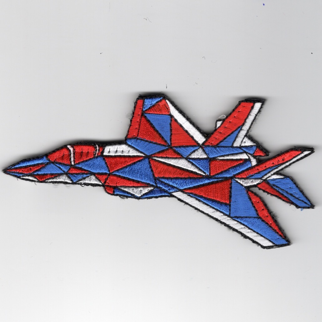 (Another AV8RSTUFF “fun” Creation): This is the *geometric-designed* F-22 RAPTOR* that has these colors: Red/White/Blue and does come with velcro attached….Why? Just for the hell of it!!!