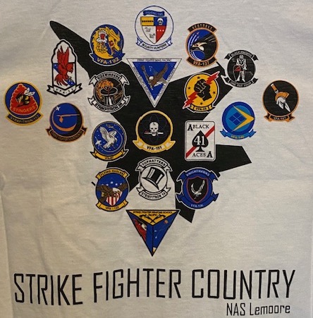 This is the front view of the NAS LEMOORE *SOUND OF FREEDOM* STRIKE FIGHTER COUNTRY T-shirt. The logo on the front breast and the design on the back of the shirt can be seen below. These came from the squadron’s original supplier using the EXACT same files, so this is as original as the day they were initially made. Only have a few of these in VERY limited sizing, so first come-first served unfortunately. Let me know, these will probably go very quickly.