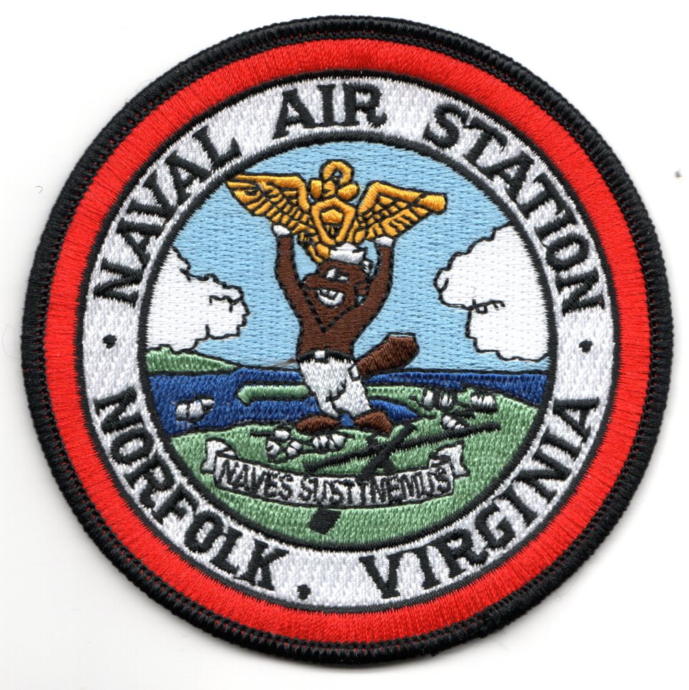 This is the base patch for NAS Norfolk, VA that host the E-2C Hawkeye community for the East coast, as well as quite a few of the helicopter squadrons. It is actually the LARGEST Naval base in the world! Home of the East Coast carriers as well. This patch does not come with velcro attached.