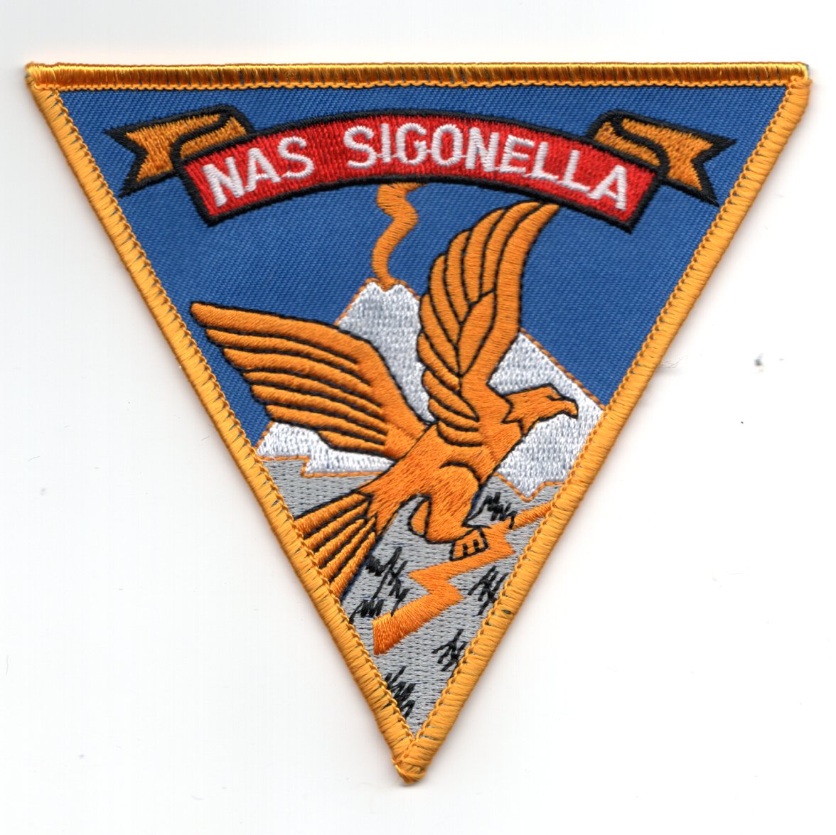 This is the ‘light yellow bordered’ version of the base patch for the Naval Air Station located at Sigonella, Sicily. The P-3C Orion’s operate out of there during deployments, as well as serving as a “layover” point for other units enroute to Deployments! This patch does not come with velcro attached.