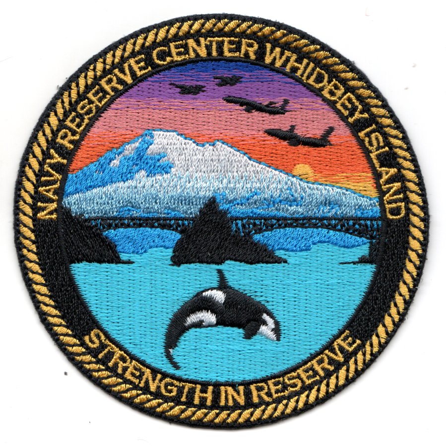 This is the Naval Reserve Center patch for the NRC at NAS Whidbey Island, WA. It says “Strength In Reserve” (bottom) and does not have velcro attached.
