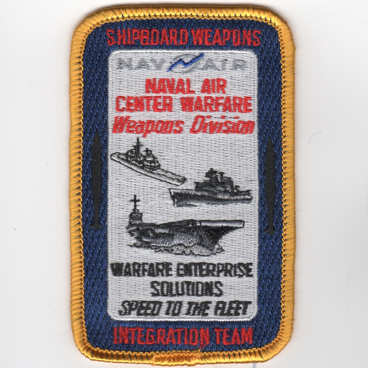 This is the NAVAIR ‘Shipboard Weapons Integration Team’ patch created for the Naval Air Center Warfare-Weapons Division that says “”””WARFARE ENTERPRISE SOLUTIONS”””” and “”””SPEED TO THE FLEET””””. This patch does not come with velcro.