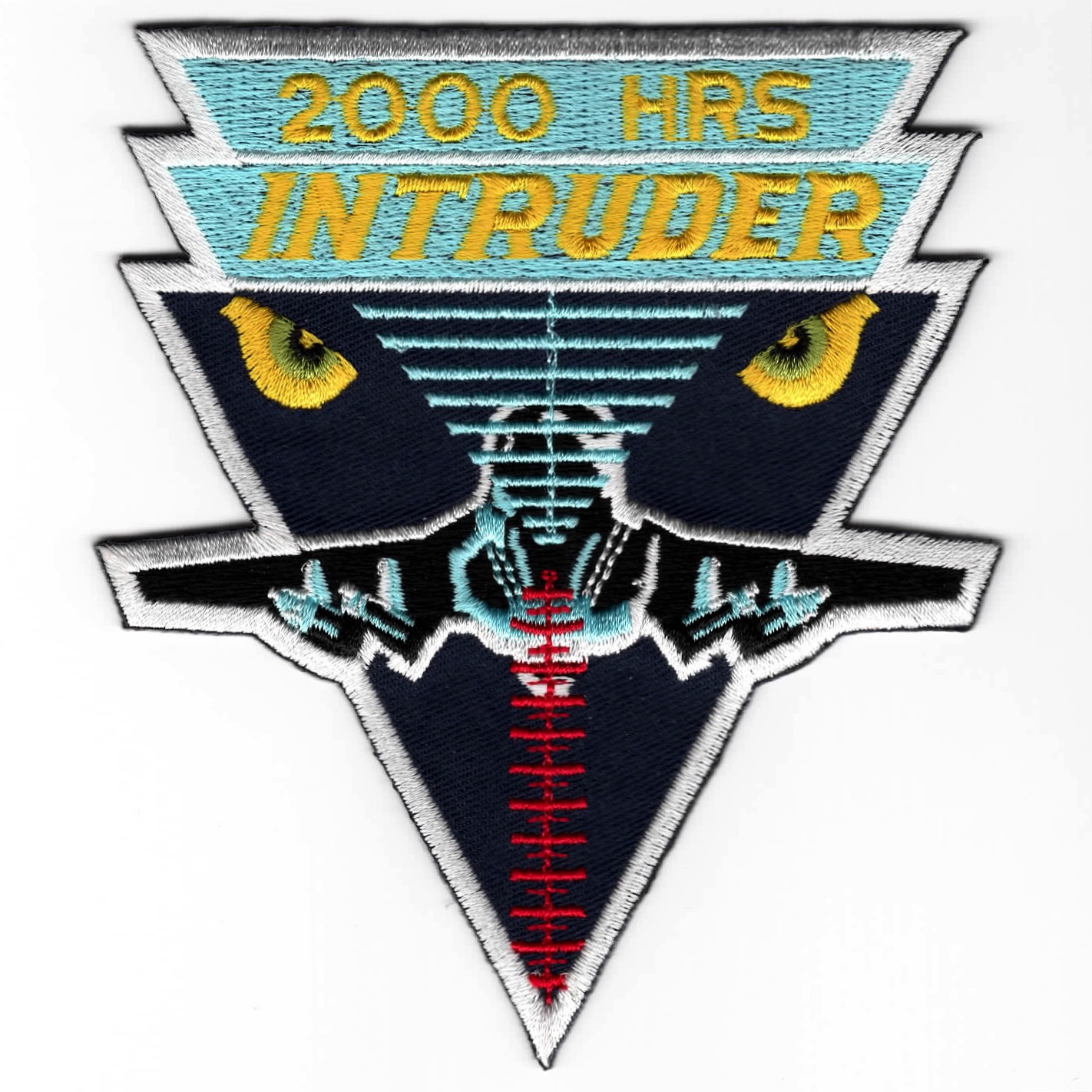 As we all know, the venerable A-6 Intruder was created by GRUMMAN. Eventually, NORTHRUP took them over, and the company is now called NORTHRUP-GRUMMAN. The “INTRUDER OFFICE” contacted me recently since AV8RSTUFF runs the Intruder Association Country Store asking if the “STORE” would want these GRUMMAN-ISSUED Intruder Hours patches. They were found in a desk drawer (no kidding) and are DIRECTLY FROM the NG-corporation. Once these are gone, there will be NO MORE originals!! This is the A-6 Intruder standard, white, cut-bordered ‘2000 HOURS’ patch worn by those who earned that many hours in the US NAVY’s greatest bomber. This patch would have been sent directly to the recipient’s squadron CO/XO for presentation, as this was a momentous occassion. This patch does not have velcro attached.