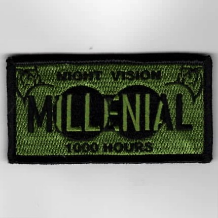 (Another AV8RSTUFF Creation): This patch was created to award to those who became *NVG MILLENIALS*, meaning they have 1,000 hours of Night Vision Goggle flight time….that’s a LOT of night flying!! This patch DOES come with velcro attached.