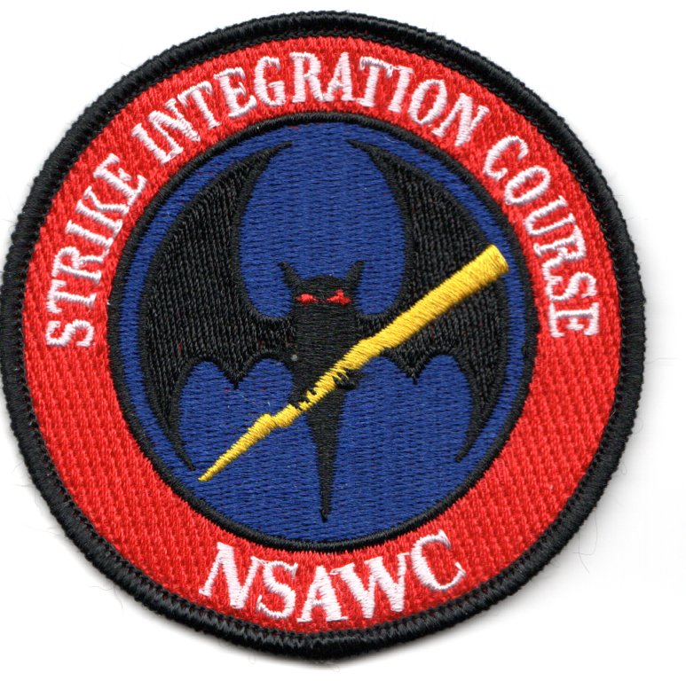 (Directly from the Squadron): The Naval Strike and Air Warfare Center (NSAWC) at NAS Fallon, NV is the center of excellence for naval aviation training and tactics development. NSAWC provides service to aircrews, squadrons and air wings throughout the US Navy through flight training, academic instructional classes, and direct operational and intelligence support. This is the STRIKE INTEGRATION COURSE patch for NSAWC for the Strike Aircraft Test division located there and does NOT come with velcro attached.
