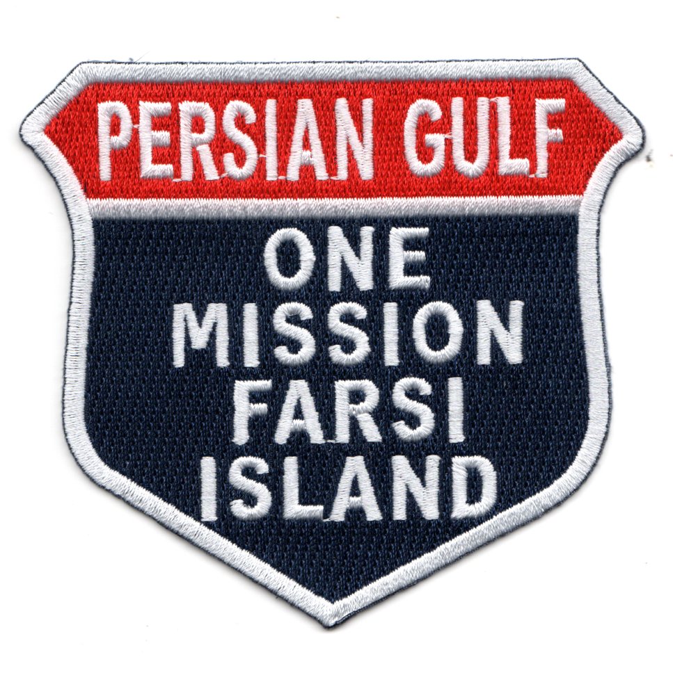 (Another AV8RSTUFF Creation) This is the patch worn by those who “”””accidentally”””” overflew IRAN’s FARSI ISLAND in the Persian Gulf (or breached their self-imposed 12-mile radius around it). This patch does not come with velcro attached.