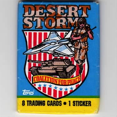 During Operation DESERT STORM (1991), TOPPS Trading Card Company created the “Victory Series” of DESERT STORM trading cards to include EIGHT cards / ONE Sticker in each pack of the different US (and Foreign?) Coalition Force Weapons of War. I believe each pack has a variety of cards in them. These were acquired from a “long time” collector that wanted to ensure they found the right homes….I don’t think there is any GUM in them. Only have a few sets left of these with the BLUE packaging (<50).