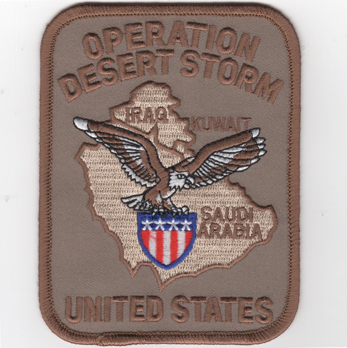 This is the desert version of the Operation DESERT STORM rectangular patch and says “”””UNITED STATES”””” along the bottom.