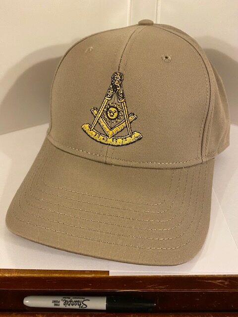 This is the khaki version of the ‘STRUCTURED’ ballcap with the STIFF front and adjustable velcro strap on the back embroidered with the Masonic PAST MASTER emblem (WITH the Square) on the front.