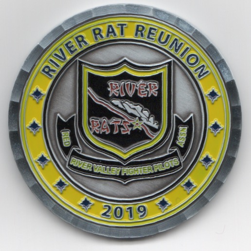 This is the ‘2019’ RRVA challenge coin/RMO (Round Metal Object) for the Charleston, SC reunion. It comes in a protectecive, clear plastic case. These were given out to those in attendance, but a few remain from the local “PALMETTO” Pack, and they have allowed us to offer them here . This is the ‘front’ view of the coin, the ‘backside’ can be seen below.