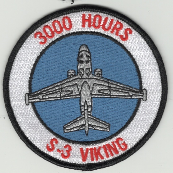 This is the *3000 HOURS* patch worn by those who accrued these flight hours in the S-3B Viking aircraft and does not come with velcro attached.