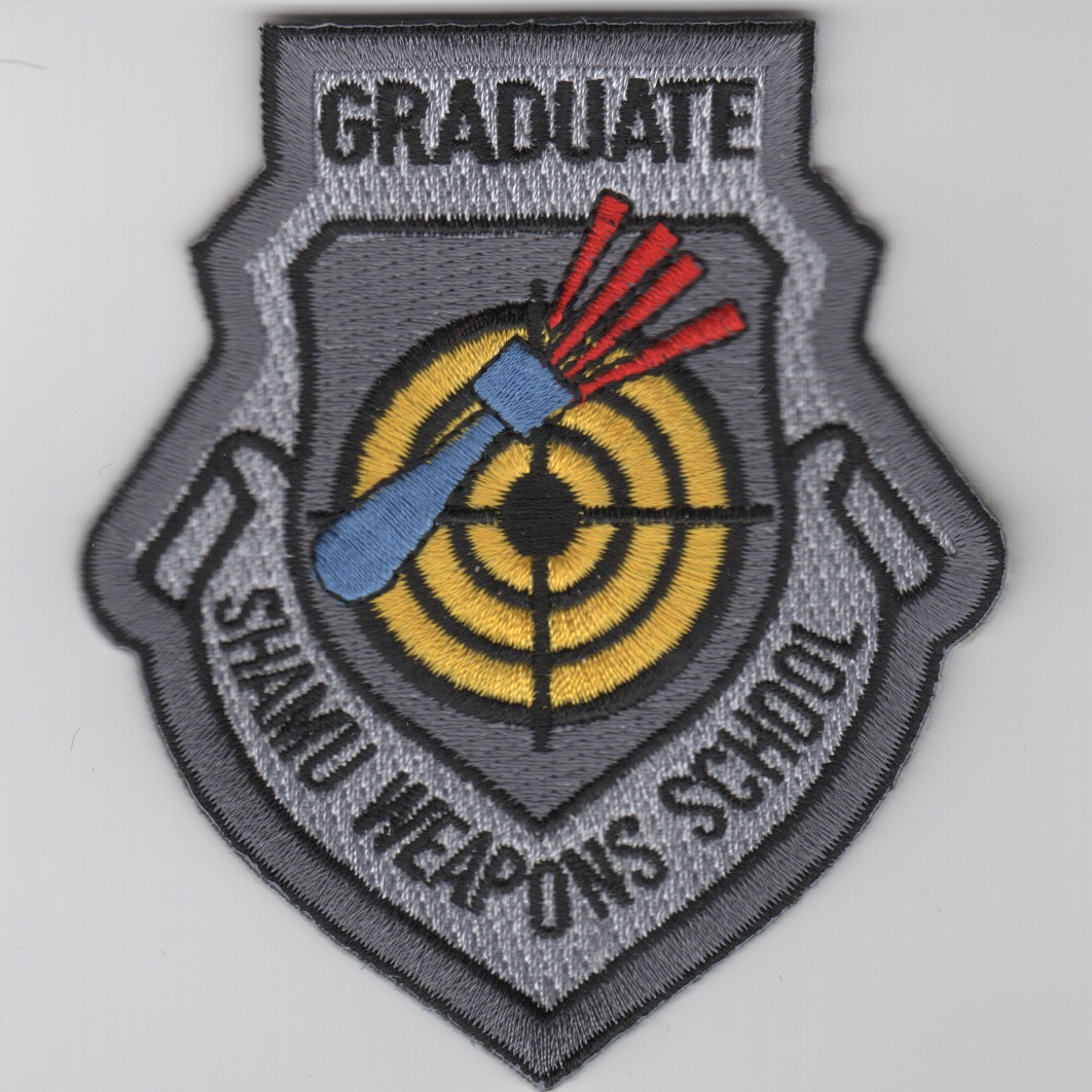 This is the SHAMU Weapons School patch for the AT-38 patch design borrowed from the 435 FS Smurf Wpns school patch done for the 97 FTS at Sheppard. “”””Shamu”””” reflects the new paint scheme for the AT-38 in two-tone grey which will go on all T-38’s over the next few years. This patch does NOT have velcro attached. I can include some if you need.