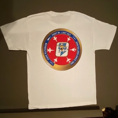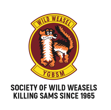 This is the white T-shirt for the *Society of Wild Weasels* (SoWW) and shows the “mascot” on the left breast. You can see other pictures below. Please specify the size needed in the “COMMENTS” section upon checkout.