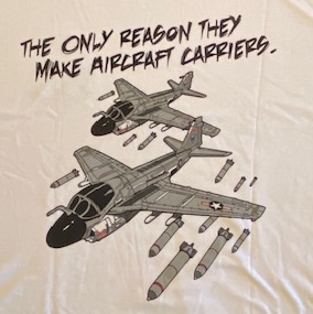 This is the VA-165 BOOMERS A-6 Intruder ‘T-shirt’ that has the famous saying “The Only Reason They Make Aircraft Carriers” (back). You can see other pictures below. Please specify the size needed in the “COMMENTS” section upon checkout.