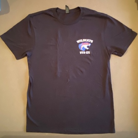 This is the VFA-131 *WILDCATS* T-shirt that says *One Team, One Fight, Single Seat Forever* (back). You can see other pictures below. Please specify the size needed in the “COMMENTS” section upon checkout.