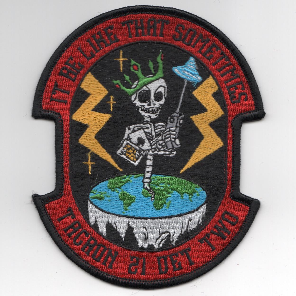 Located in Virginia Beach, VA, Tactical Air Control Squadron Two One (TACRON-21) trains, deploys and supports combat-ready TACRON detachments providing centralized planning, control, coordination and integration of amphibious and expeditionary combat air operations. This is the DET TWO patch showing a Skeleton “somewhere” in the world, as they can be deployed anywhere rapidly. This patch does not come with velcro attached.
