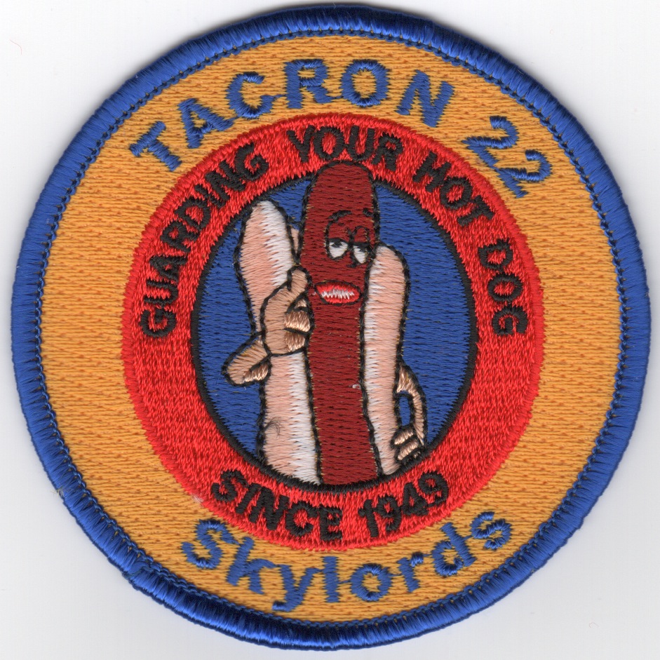 This is the patch worn by the TACRON-22 personnel. They have detachments to coordinate all air operations in support of amphibious forces. ÊThey also establish a Tactical Air Control Center and/or Tactical Air Direction Center to centralize control, coordination and integration of amphibious air operations and training, as well as maintain the capability to temporarily man and operate an existing Air Traffic Control Facility or establish a remote facility ashore to control air traffic in support of contingency operations.