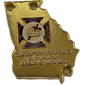 This is the GEORGIA Templar Belt “Chain Holder” with (small) 4mm holes to keep the 3 strands of Barrel Chains connected together when not attached to the Templar Sword. It has the “gold” finish and (very small) areas to engrave names/dates. Even if the clasps do not fit, can be “drilled out” or used as a challenge coin!!