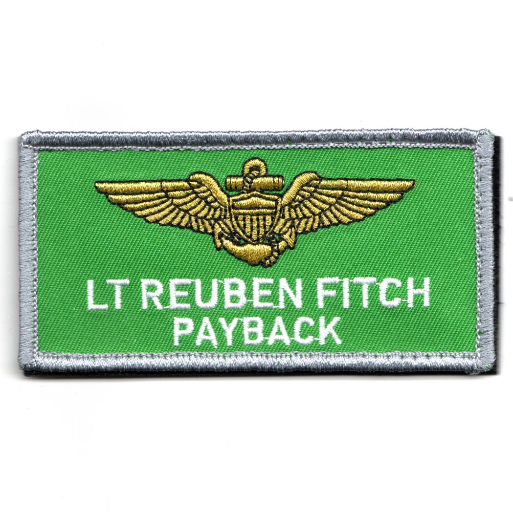This is the LT REUBEN FITCH’s (callsign “PAYBACK”) nametag (already embroidered) that was used in the movie, TOPGUN:MAVERICK. It was worn on the left breast area of the flight suit and does have velcro attached so that it can be put onto your flightsuit or flight jacket. Note this version has the lines the way we usually wear our nametags….callsign on line 2.