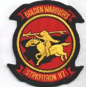 This is the VFA-87 ‘GOLDEN WARRIORS’ squadron patch used in the movie, TOPGUN:MAVERICK by the character “ROOSTER”. It is worn on the right breast area of the flight suit and does not come with velcro attached.