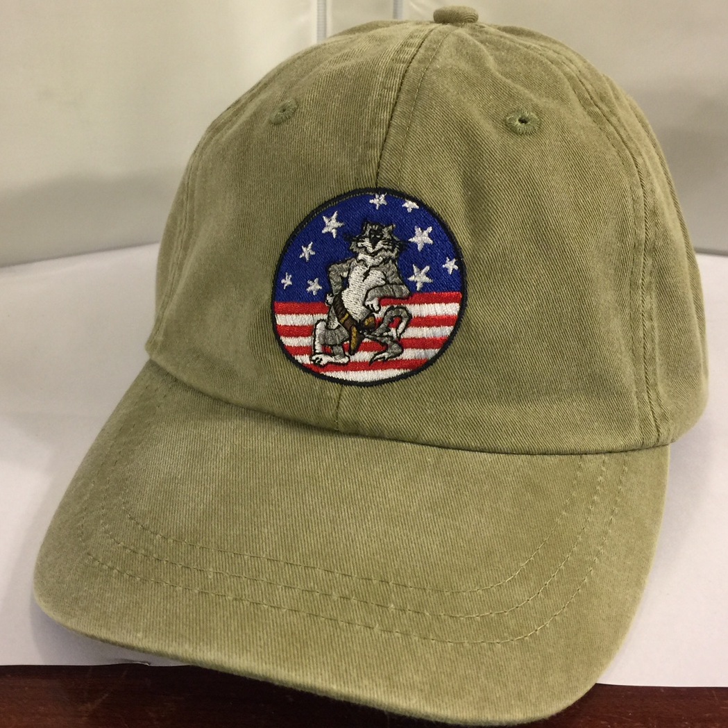 This is the khaki version with the leather adjustable strap in the back that has the “”””FELIX”””” of the Tomcat Association LOGO embroidered directly onto the front of the cap!!