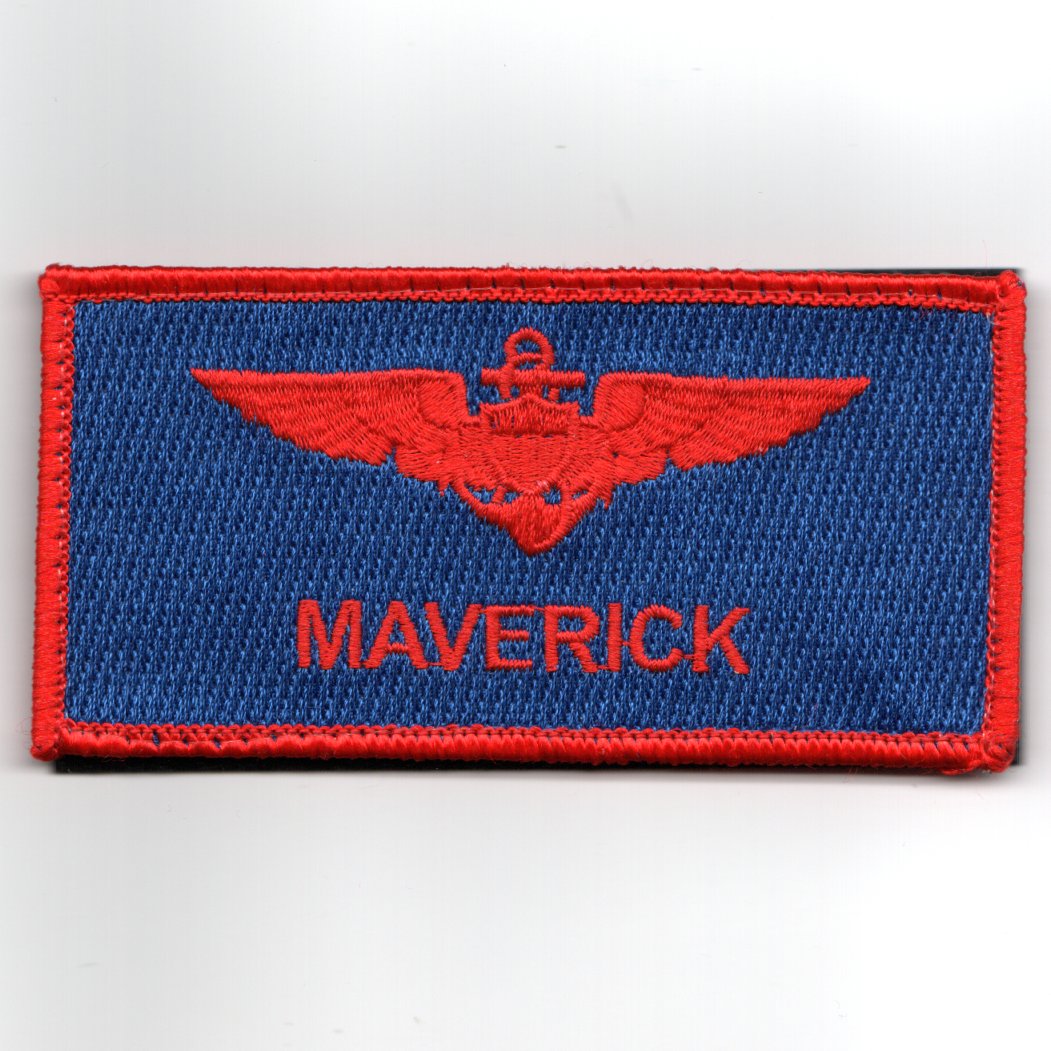 This is the red-blue version of ‘MAVERICK’s nametag from the movie TOPGUN. It can be worn on the left breast area of the flight suit and does have velcro attached.