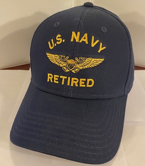 This is the dark blue wool version of the ballcap that says U.S. NAVY RETIRED with US NAVAL FLIGHT OFFICER (NFO) Wings in the center.