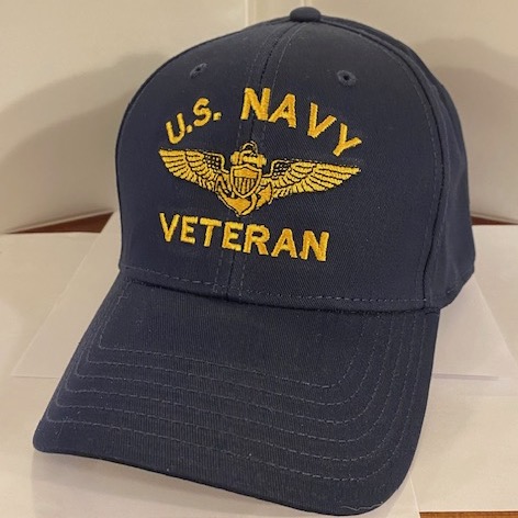 This is the dark blue wool version of the ballcap that says U.S. NAVY VETERAN with USN PILOT Wings in the center.