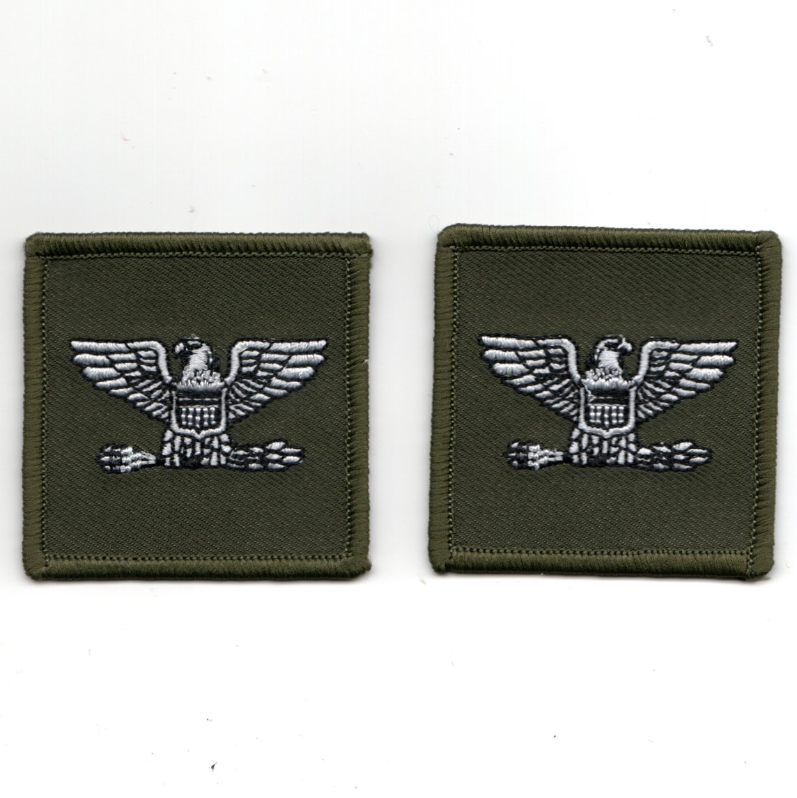 This is the O-6 rank worn on the shoulders of the green FLIGHT SUITS for the US Navy (CAPTAIN) / US MARINE CORPS (COLONEL) aviators and does NOT comes with velcro attached. Note that each EAGLE is facing the opposite direction as the other. There are two pieces included.