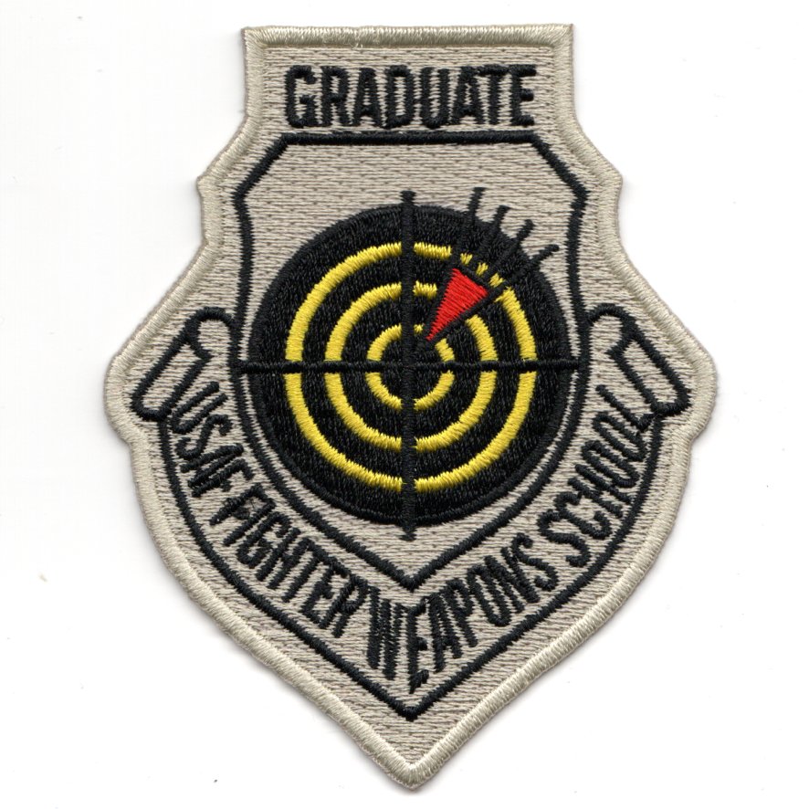 This is the standard version of the “”””old school”””” USAF Weapons School GRADUATE patch that states “”””USAF FIGHTER Weapons School”””” in the standard gray color. IT DOES HAVE VELCRO!!