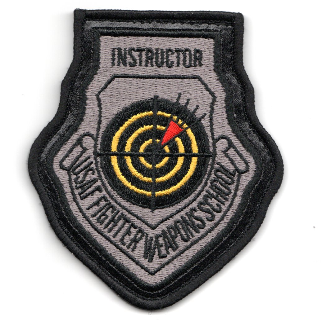 This is the leather-bordered version of the USAF FIGHTER Weapons School INSTRUCTOR patch that states “”””USAF Fighter Weapons School”””” along the bottom and “”””INSTRUCTOR”””” at the top in the standard gray color. This version does NOT come with velcro attached.