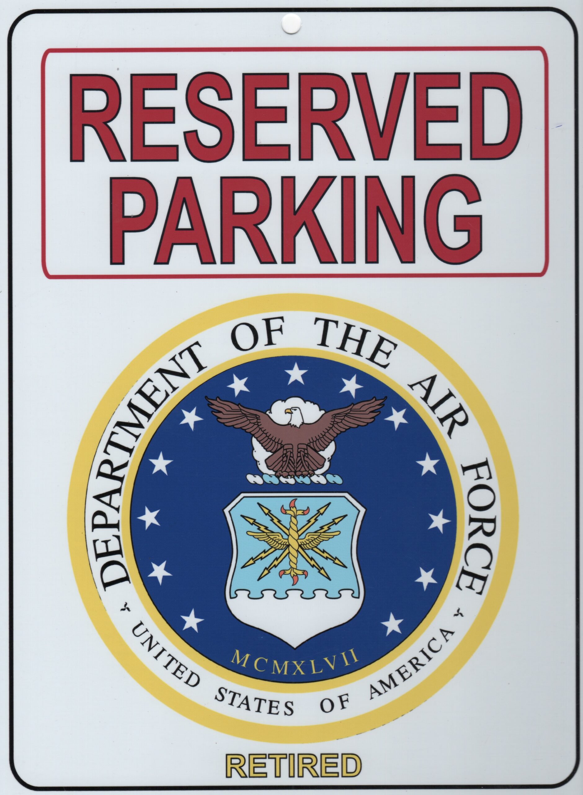 This is the USAF’S “”””RETIRED”””” metal Parking Placard measuring 9″””” x 12″””” that can be used to reserve your special parking spot!