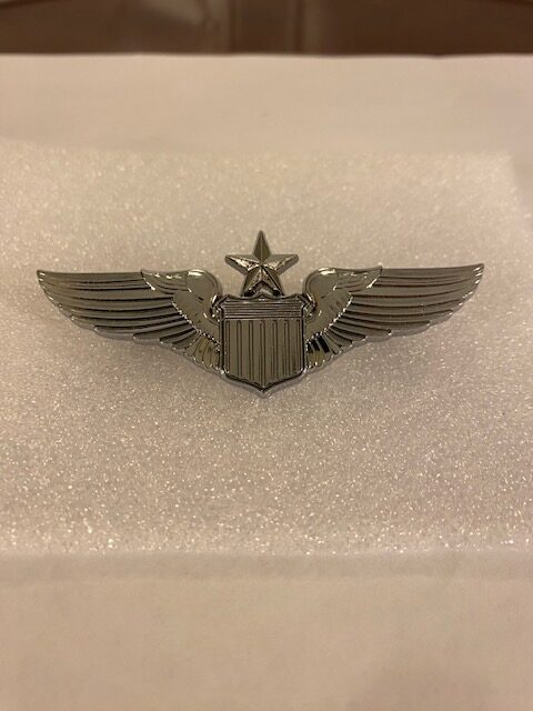 USAF aeronautical badges, commonly referred to as “wings” from their shape and their historical legacy, are awarded by the Air Force in recognition of degrees of achievement and experience. Officers earning these badges and maintaining their requirements are classified as rated officers and receive additional pay and allowance. This is the “large” version of the USAF “SENIOR” Pilot rating worn on the Service Dress Uniform.