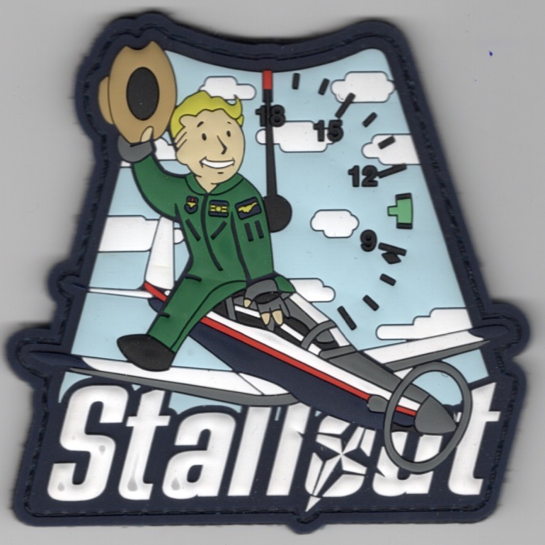 The 80th Flying Training Wing, located at Sheppard AFB, TX is the Euro-NATO Joint Jet Pilot Training Program, established in the spirit of NATO, and is the world’s only multi-nationally manned and managed flying training program chartered to produce combat pilots for NATO. The 80th FTW is the official U.S. Air Force designation of this flying training organization, but it is better known as ENJJPT by its members. This is the white PVC version of the class patch created for Class 25-08. It shows the student sitting on the T-6II Texan (like SLIM PICKENS in the movie “Dr. Strangelove”) with the compass rose in the background, says “STALLOUT”, and does come with velcro.