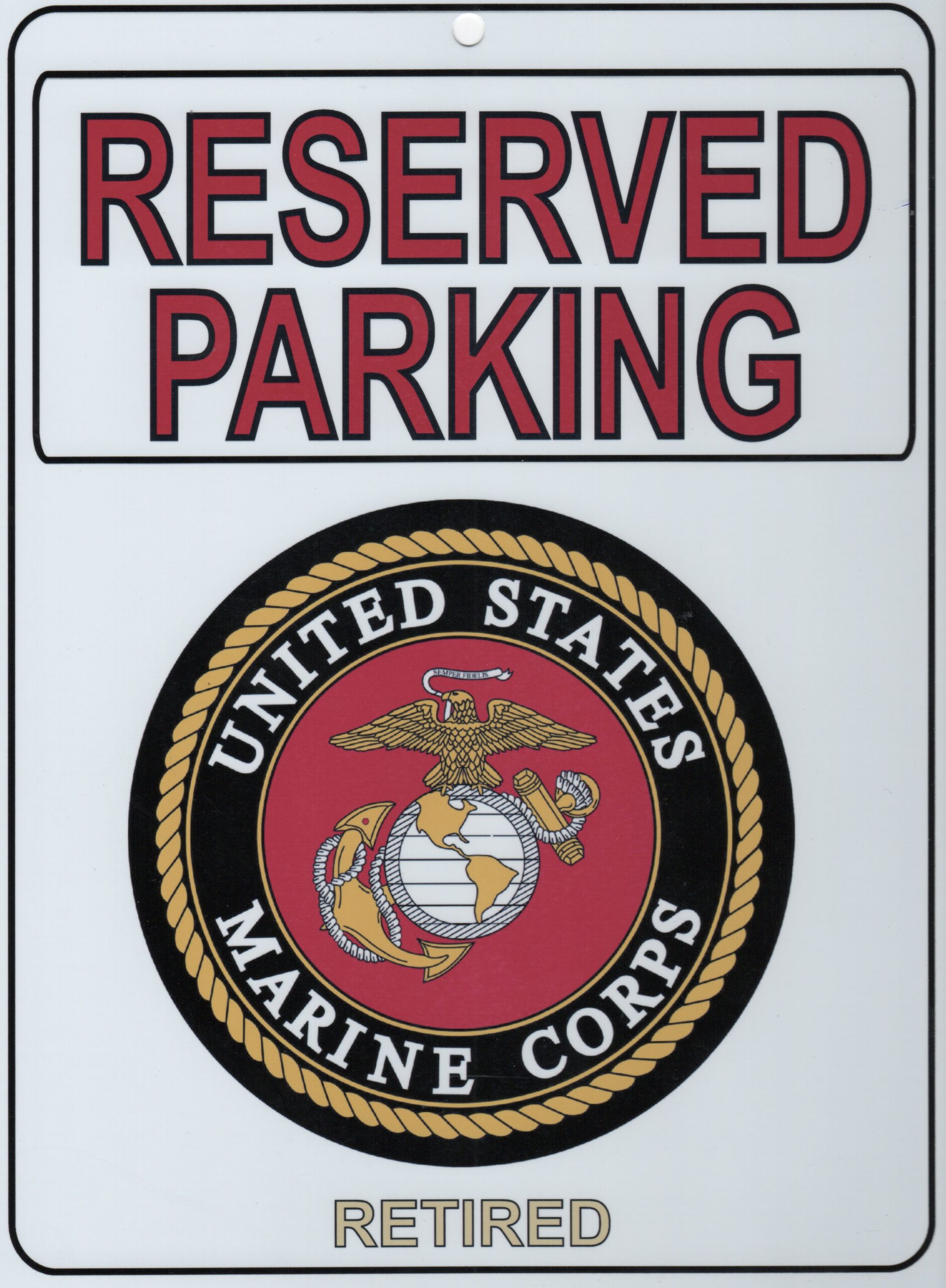 This is the ‘USMC RETIRED’ metal Parking Placard measuring 9″””” x 12″””” that can be used to reserve your special parking spot!