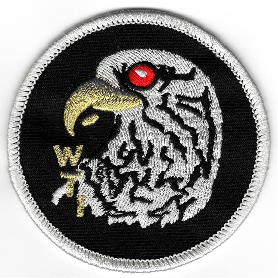 The WTI, Weapons and Tactics Instructor School, is based at MCAS Yuma, Arizona. This is the version of their graduate patch that has the letters “W T I” on the left side of the patch in gold thread and does NOT come with velcro attached.