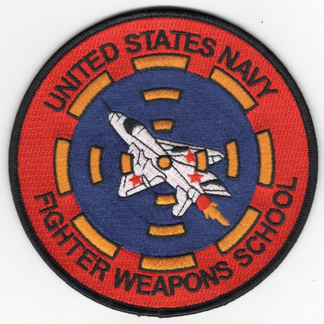 The USN FWS, Fighter Weapons School, commonly referred to as “Top Gun”, was based at NAS Miramar, CA, but has since been moved to NAS Fallon, NV. This is the large version of their school patch that is sewn onto the Ready Room Chair Seat Covers (as seen in TG: MAVERICK), helmet bags, or the back of their flight jackets. This large patch does not come with velcro attached.