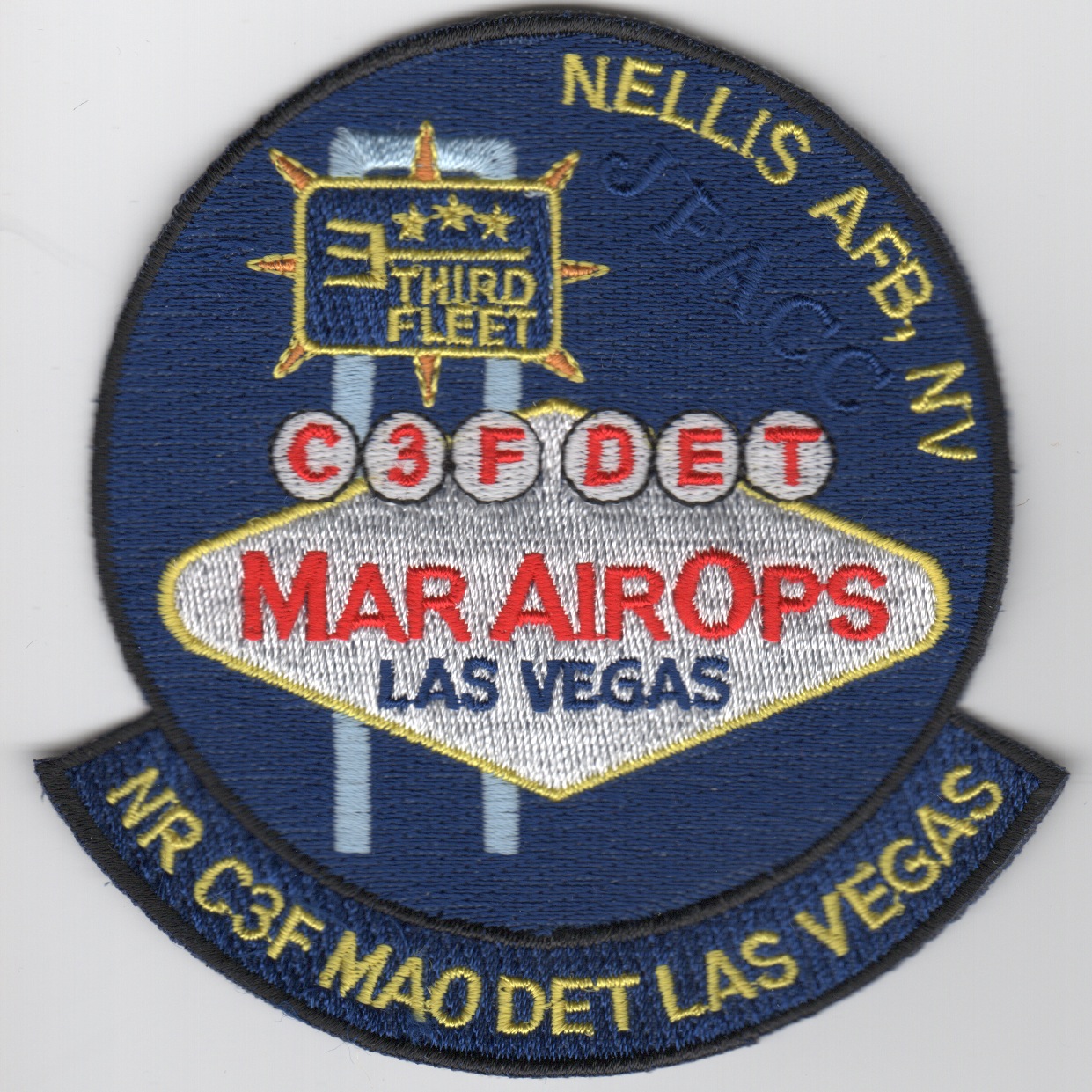 The Third Fleet is one of six numbered fleets in the United States Navy. Third Fleet’s area of responsibility includes approximately fifty million square miles of the eastern and northern Pacific ocean areas including the Bering Sea, Alaska, the Aleutian Islands and a sector of the Arctic. Major oil and trade sea lines of communication within this area are critically important to the economic health of the United States and friendly nations throughout the Pacific Rim region. First established in 1943, the Third Fleet conducted extensive operations against Japanese forces in the Central Pacific during World War II. Deactivated in 1945, the fleet remained inactive until 1973, when it was reactivated and assumed its current responsibilities. This patch was created for their “det” to Las Vegas for MAR AIR OPS. It does not have velcro attached.