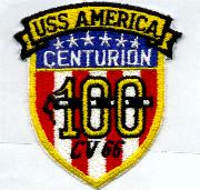 This is the Centurion patch for the USS America. You had to have a total (day & nite) of 100 arrested landings (traps) to earn this patch. These are rare and hard to come by as they were only given to the aircrew that earned them, and usually only 1 was given.