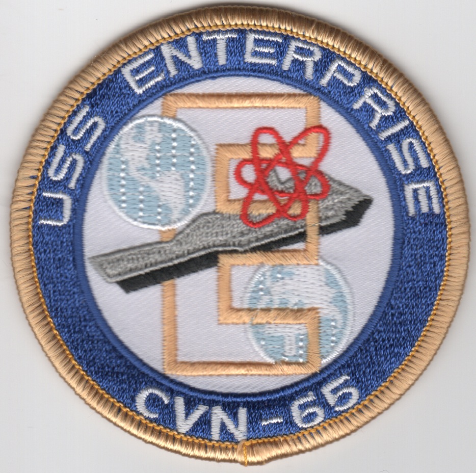 The world’s first nuclear-powered aircraft carrier and the eighth ship to carry this proud name, the Big ‘E’ was commissioned on 24 November 1961. She is home-ported at NAS Norfolk, VA and underwent a major overhaul in the early ’90s, deployed with CVW-17 in 1996, completed a short overhaul in the summer of 1997, deployed again with CVW-3 in late 1998 to May 1999 to the Med and Arabian Sea regions during which time, they planned many contingency operations in support of the Kosovo crisis while in the Adriatic Sea, as well as participated in Operation Desert Fox while in the Persian Gulf. This is the small version of their patch. This ship has now been decommissioned.