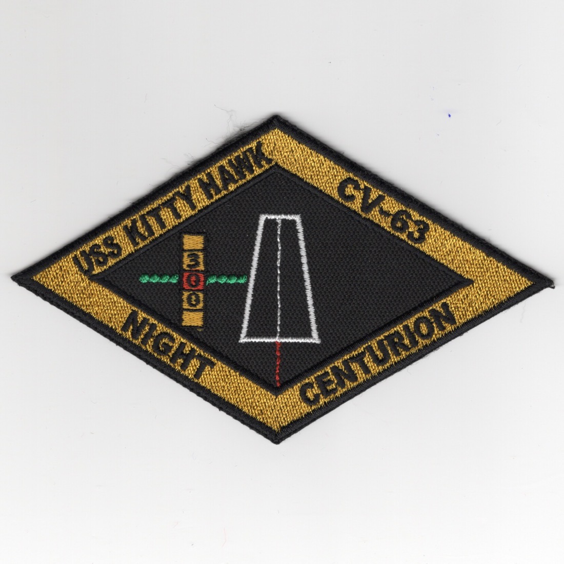 This is the *NIGHT TRIPLE-CENTURION* (300 Night Traps) Diamond patch for the CV-63 / USS Kitty Hawk and does not have velcro attached