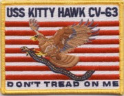 The keel for the lead ship of this class was laid on 27 December 1956, and was named to honor the location of the first flight made by the Wright brothers. “Kitty” was launched on 21 May 1960 and placed in commission on 29 April 1961. She was home-ported now in Yoosuka, Japan after arriving there on 11 August 1998 upon completion of a 12-month, $65 million overhaul in April 1998. This is the famous “Don’t Tread on Me” Patch.