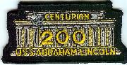 The keel for the carrier named in honor of America’s 16th President was laid on 3 November 1984, launched on 13 February 1988, and commissioned on 11 November 1989. Previously, the Fleet Ballistic Missile Submarine (SSBN) 602 carried the name. She deployed on a WestPac/Arabian Gulf deployment on 11 June 1998 for her regularly scheduled rotation, then returned on 7 December 1998 to her home port of Everett, WA. This is the “200 Traps” (Double Centurion) patch created for those flyers attached to her.