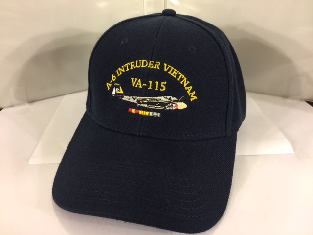 VA-115 ‘Intruder Vietnam’ Ballcap (Dark Blue/ Directly Embroidered onto the cap) and has the three combat ribbons underneath.