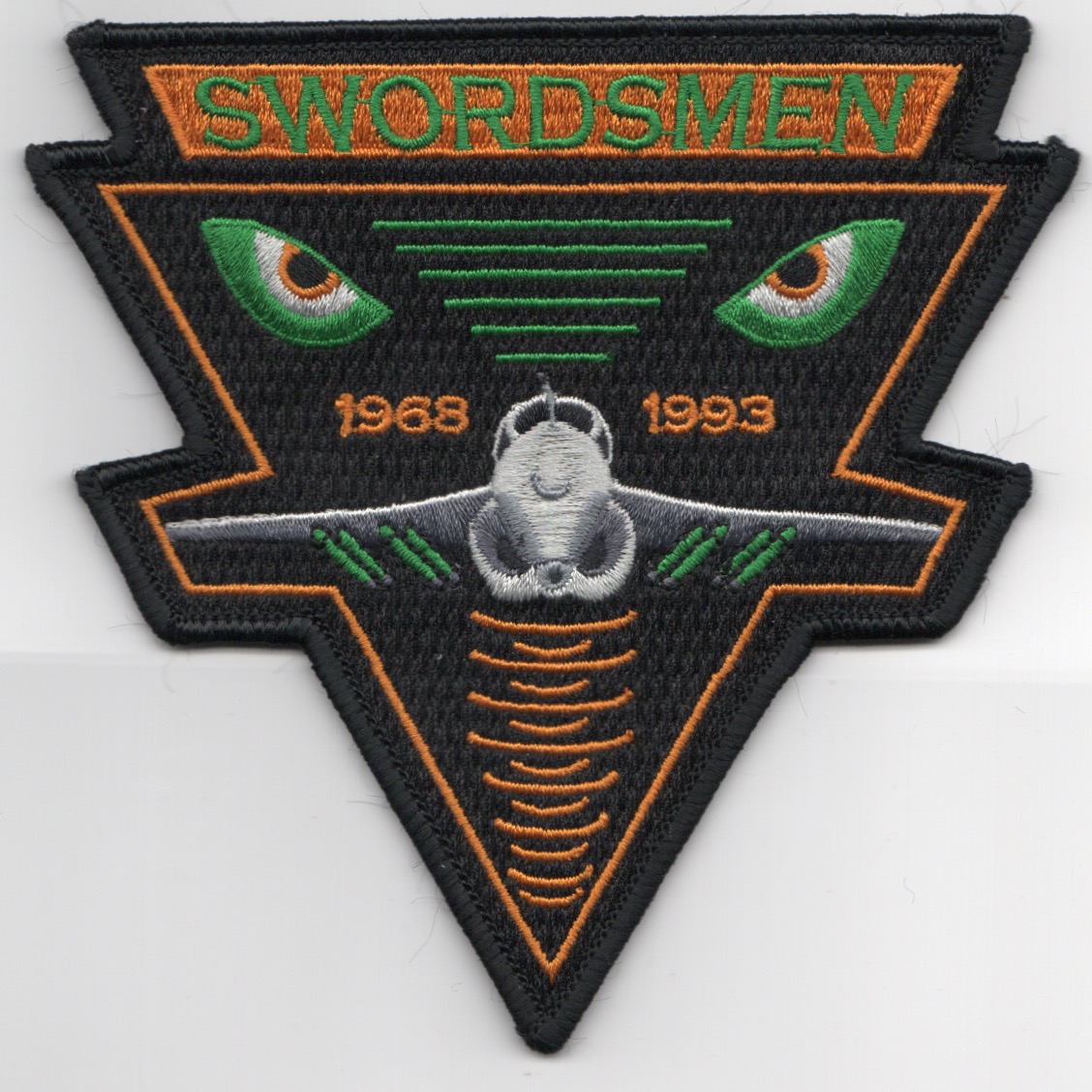 Another AV8RSTUFF Creation: The “Swordsmen” of VA-145 originated from the reserve squadron VA-702 when they were called to active duty in July 1950. They flew F-4U Corsairs and AD-1 Skyraiders, before transitioning to the venerable A-6 INTRUDER. This patch was commemorated to celebrate their years of flying the mighty Intruder, from 1968 – 1993. This patch does not come with velcro attached.