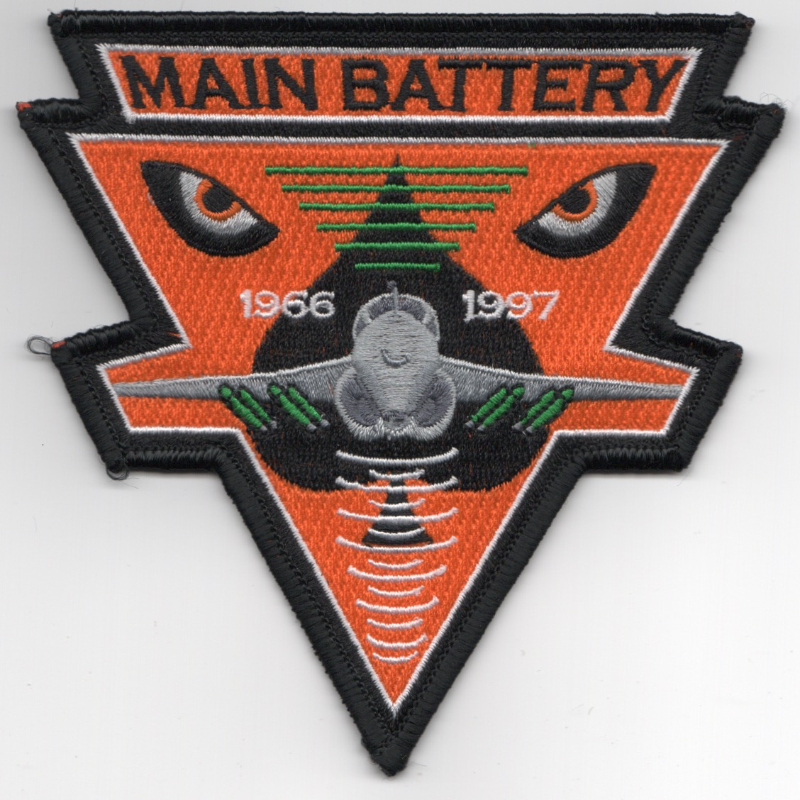 Another AV8RSTUFF Creation: The ‘Main Battery’ of VA-196 began life in July ’48 as VF-153 but was redesignated VF-194 in Feb ’50. They then became VA-196 in May ’55, but were decommissioned in 1997. They flew the A-6E Intruder out of NAS Whidbey Island, WA from 1966 – 1997. This is their Intruder patch that states ‘MAIN BATTERY’, depicts their years of flying the venerable Intruder, and does not come with velcro attached.
