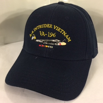VA-196 ‘Intruder Vietnam’ Ballcap (Dark Blue/ Directly Embroidered onto the cap) and has the three combat ribbons underneath.